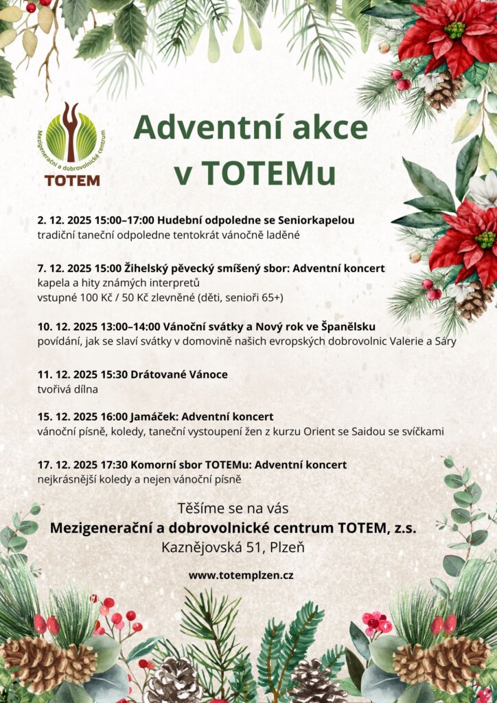 V TOTEMu v Bolevci plánujeme krásné adventní akce a budeme rádi, když se na některé z nich potkáme. Příležitost si jistě najdou jak milovníci adventních koncertů, tak tvořiví či zvídaví lidé. A určitě každý, kdo se chce příjemně vánočně naladit. Stačí si jen vybrat…