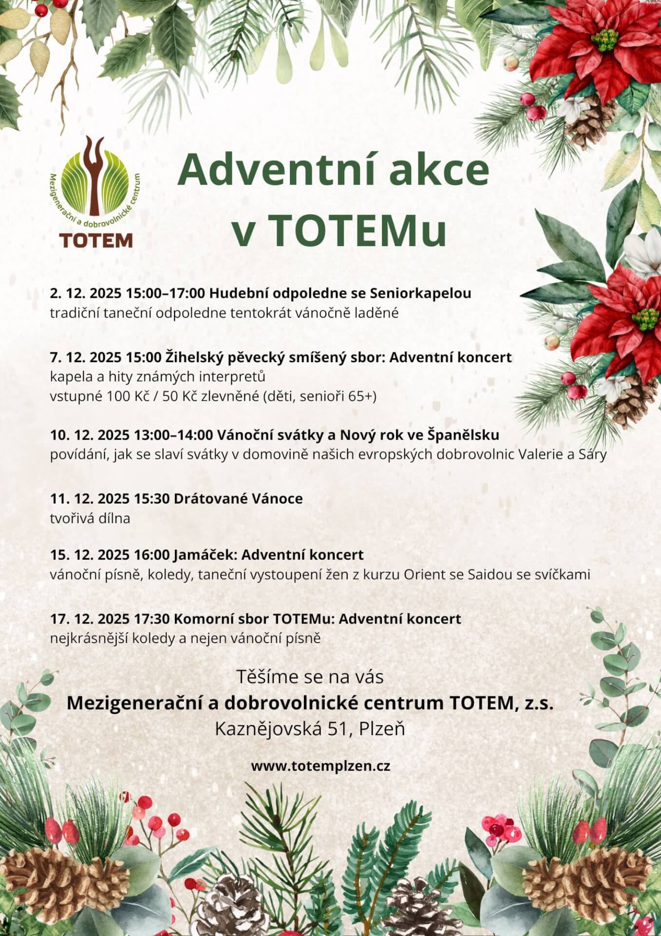 A jestli to za vánoční náladou máte blíž na Doubravku nebo na Novou Hospodu, i tam si můžete vybrat z TOTEMových akcí, které vám dopřejí trochu vánočního kouzla a milých setkání.