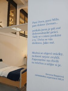 V úterý 12. listopadu 2025 se náš tým sociálně aktivizační služby pro seniory vydal na pracovní cestu do Prahy. Cílem byla výstava Hlas péče, kterou jako Institut blízkosti připravila organizace Mila a provedla nás jí Simona Bagarová, zakladatelka a ředitelka organizace.