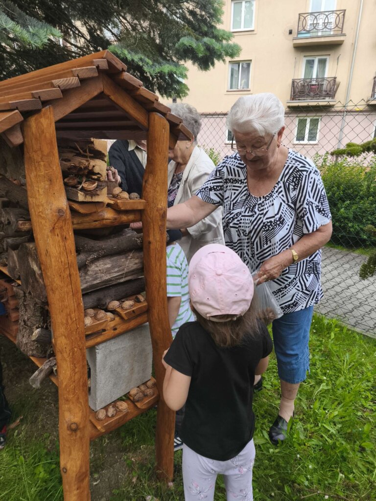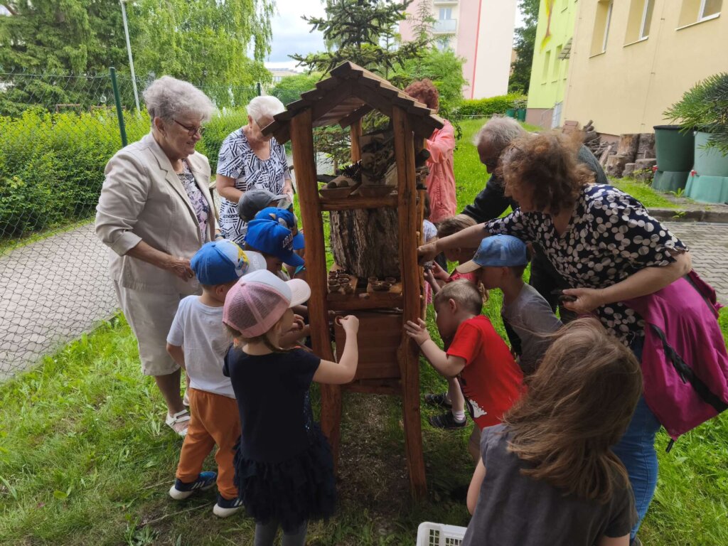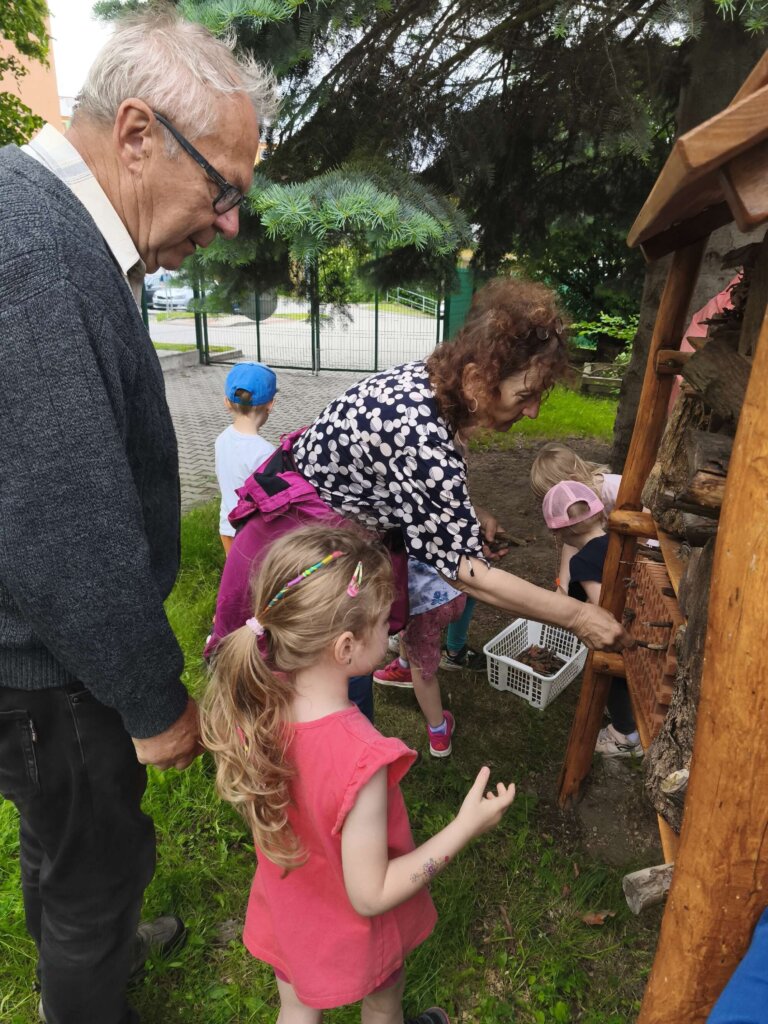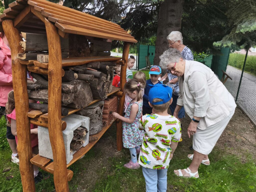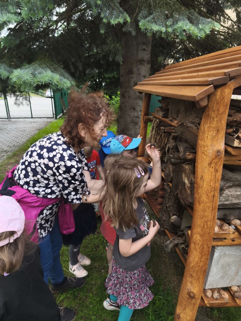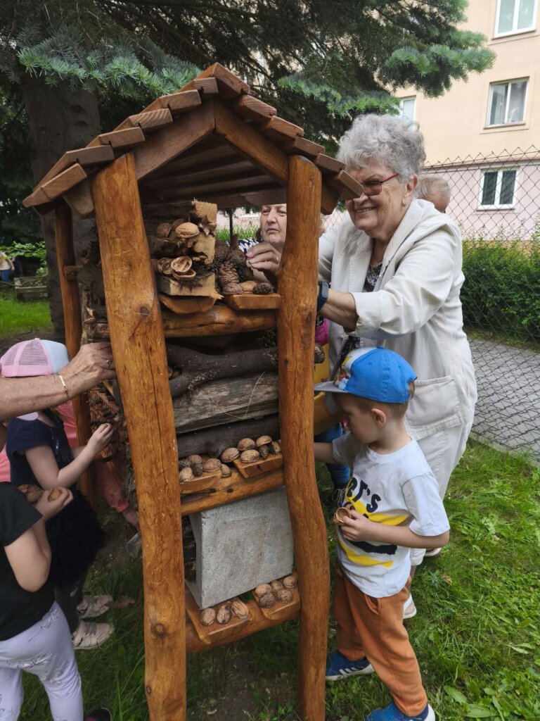 Děti, babičky a děda připravili na školkové zahradě domeček pro malé hmyzí návštěvníky. Moc se jim to povedlo a užili si hezký společný čas.