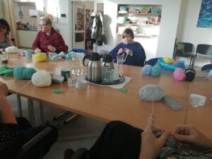 Atmosféra byla pohodová, plná sdílení, povídání i tichého soustředění, které ke tvoření neodmyslitelně patří. Odcházely jsme s rozpracovanými výrobky, natěšené na další setkání a pokračování ve společném háčkování.