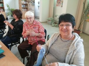Náš kurz byl určen nejen těm, kdo už mají s háčkováním určité zkušenosti, ale také úplným začátečnicím. Vše potřebné bylo připraveno a pod vedením naší dobrovolnice paní Jaroslavy Ludvíkové, která celým kurzem trpělivě, srozumitelně a s velkou dávkou laskavosti provázela (a stála i u samotné myšlenky zařadit kurz do našeho programu), jsme se postupně seznamovaly se základními očky a navazujícími postupy.